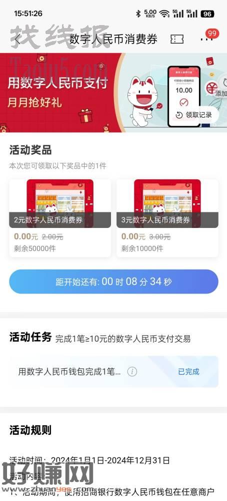 3块 招行-数币-招好运币有礼-数币有礼