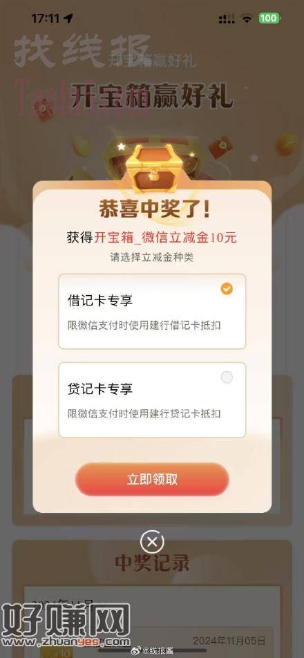 建行开宝箱试试,