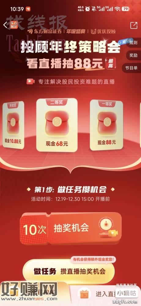 东方财富证券新活动,做任务攒抽奖机会,要等最后开播抽