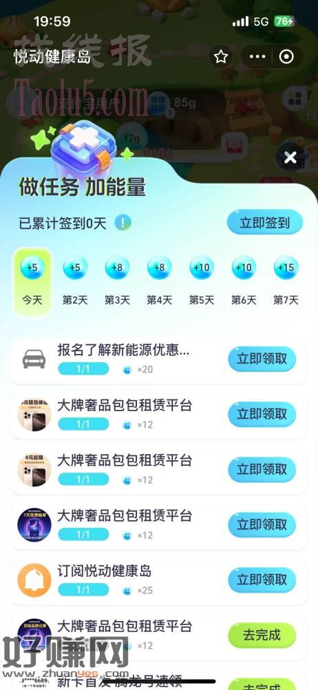 支付宝搜:悦动健康岛,进去左下做浏览任务,赚够200能量,兑