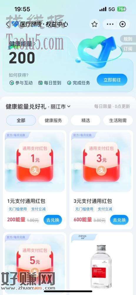 支付宝搜:悦动健康岛,进去左下做浏览任务,赚够200能量,兑换1通用红包