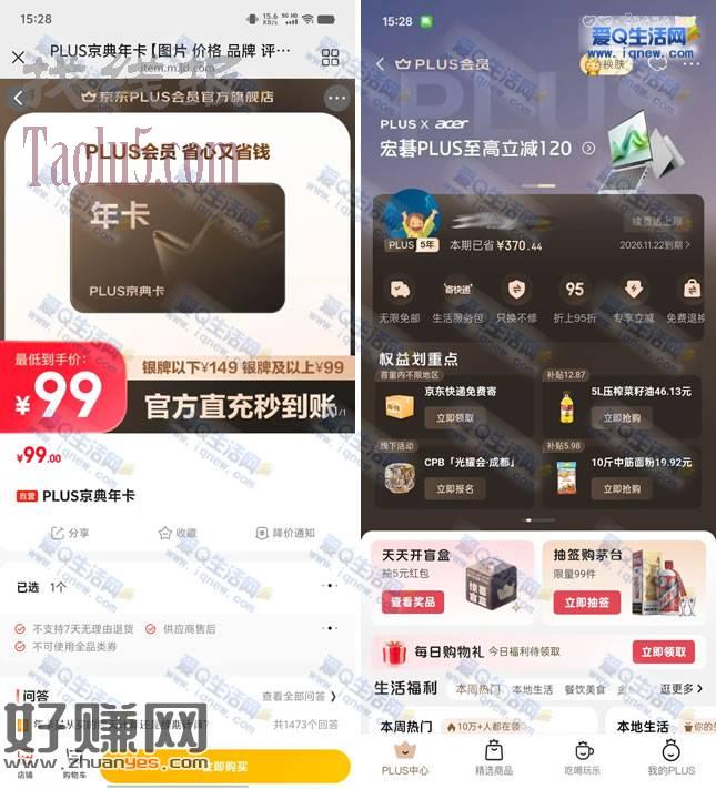 京东plus年卡活动 最低39元到手一年