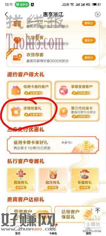 首页城市专区,在点进去惠享浙江,下拉找到浓情双重礼,应该是付4得16。
