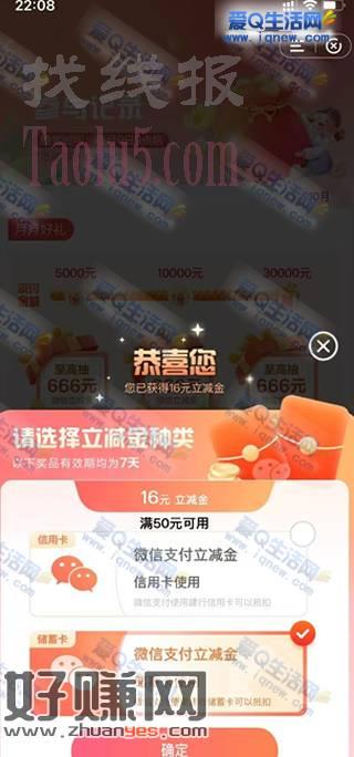 使用建行卡在微信支付满15笔,也有一次抽奖机会