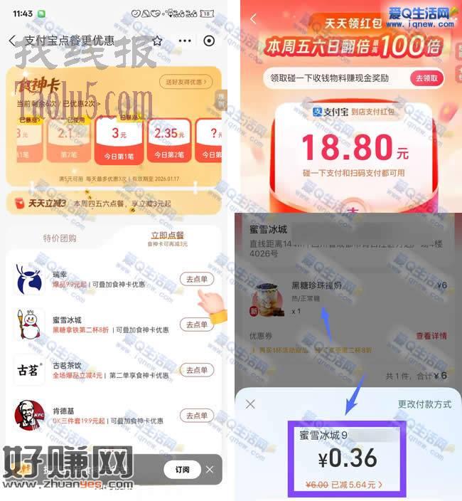 然后得加支付宝到店鸿苞,最低可以0-1元和蜜雪冰城