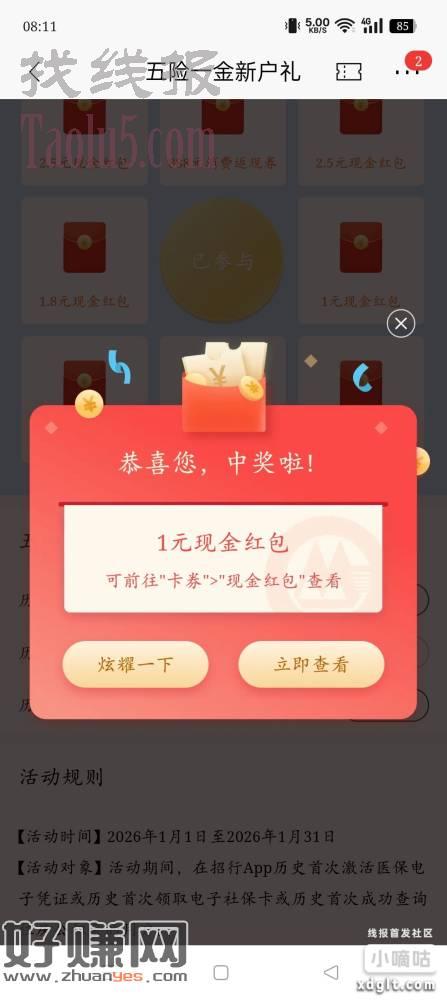 招商YH五险一金新户礼,现金红包消费返现红包,看你看你手气和运气。