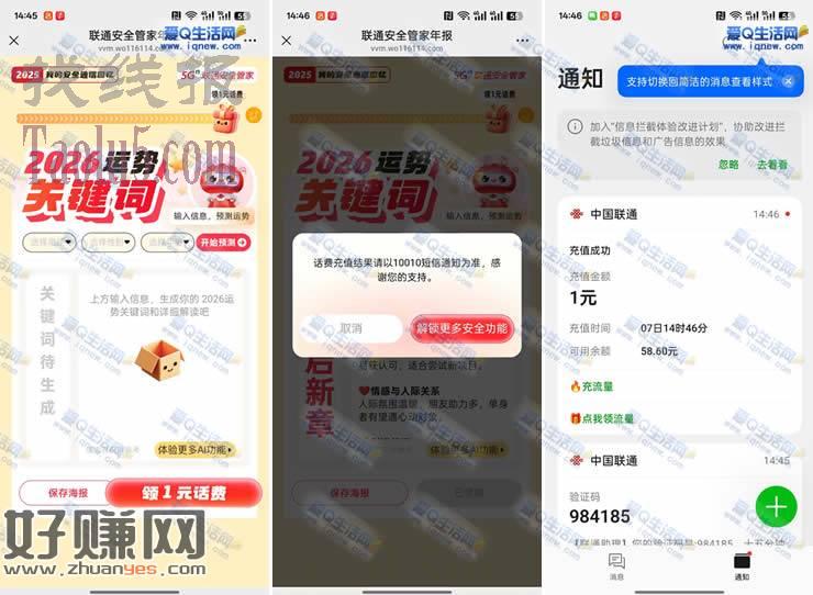 联通安全管家年报领1元话费 亲测1元秒到
