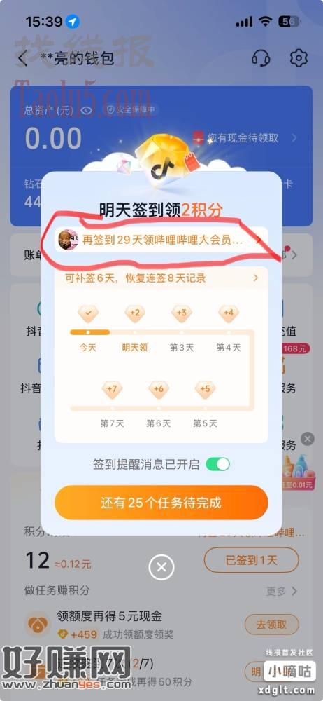 抖音 APP 签到 30 天领哔哩哔哩大会员