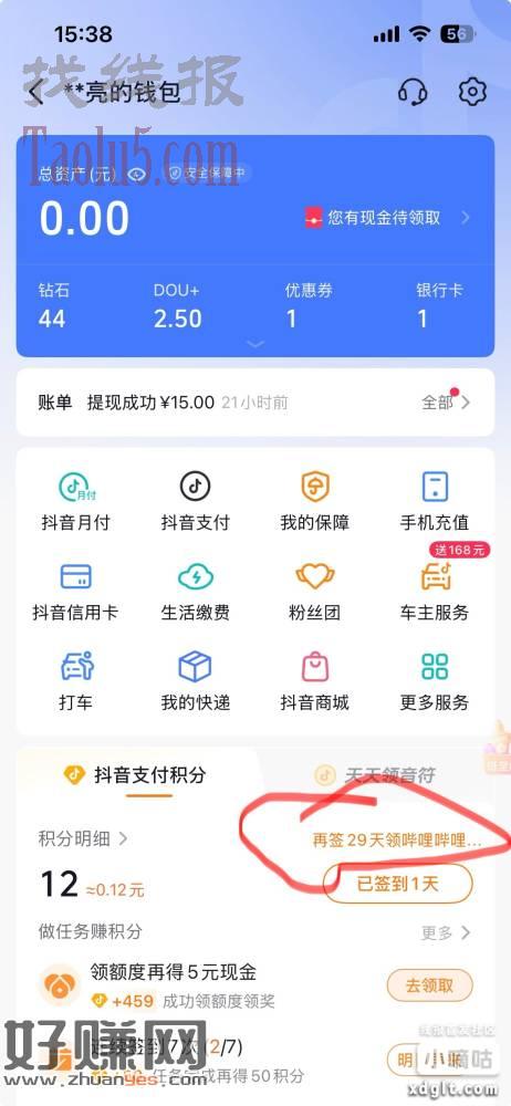 有耐心的去:抖音-我-右上角三个点-我的钱包