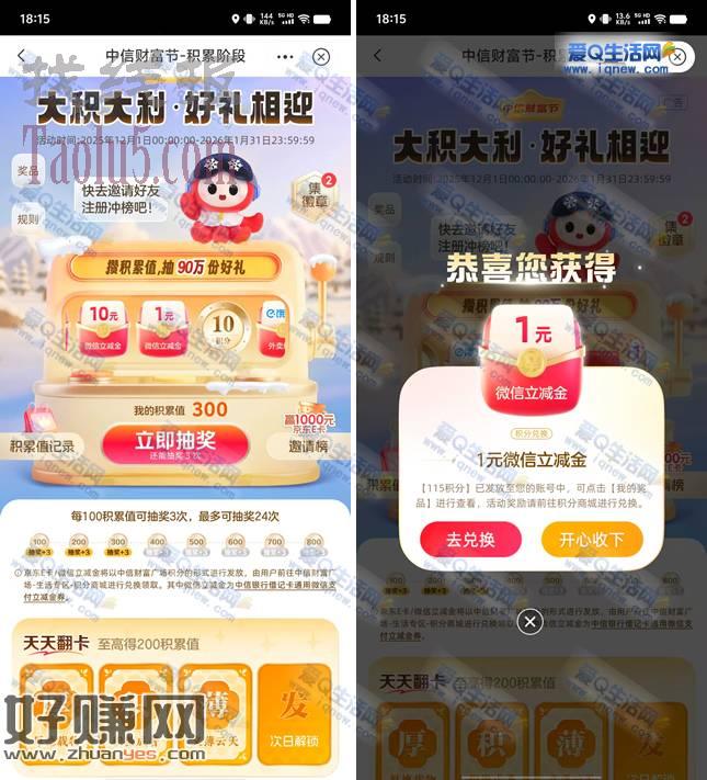 完成任务攒积分可解锁抽奖次数,抽奖非必中