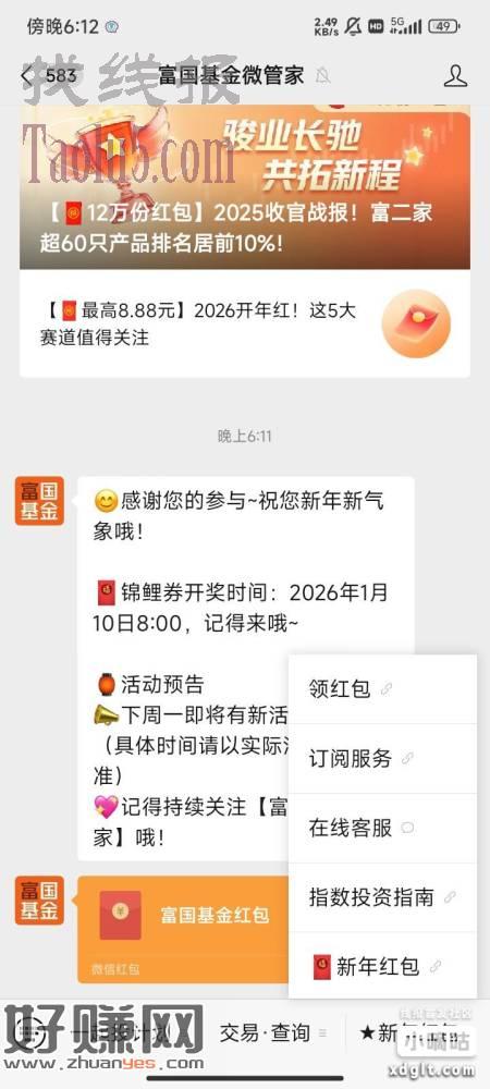 富国基金微管家,右下角新年红包,那个每周活动也可以参与一下,