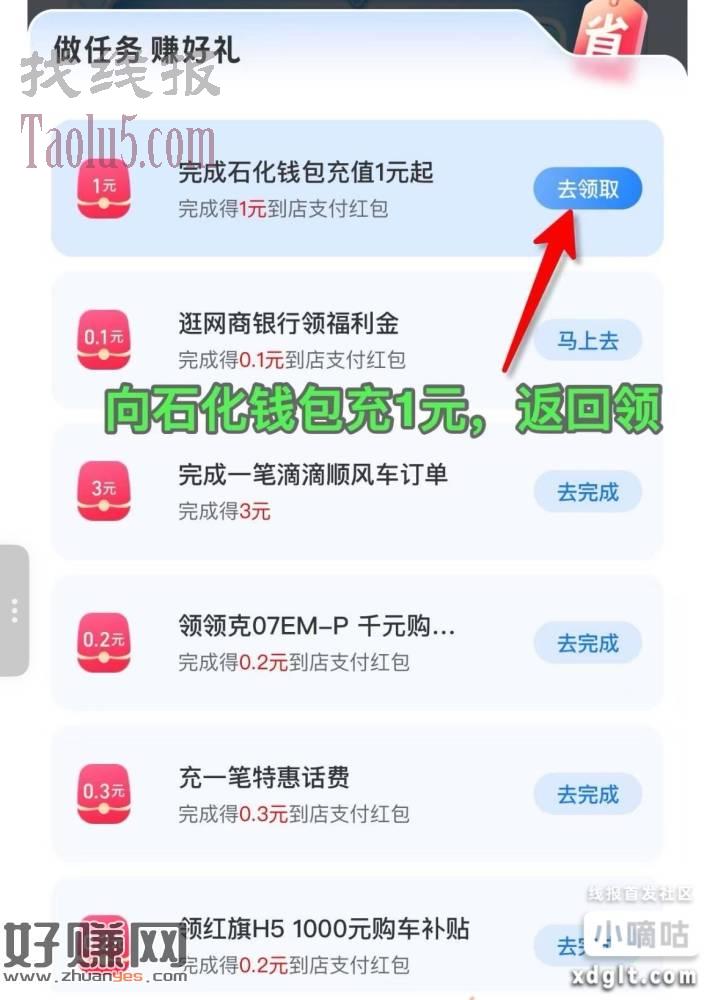 补充一个,zfb…支付有礼,向这个任务石化钱包里面充一元 返回就可以领一元支付红包。