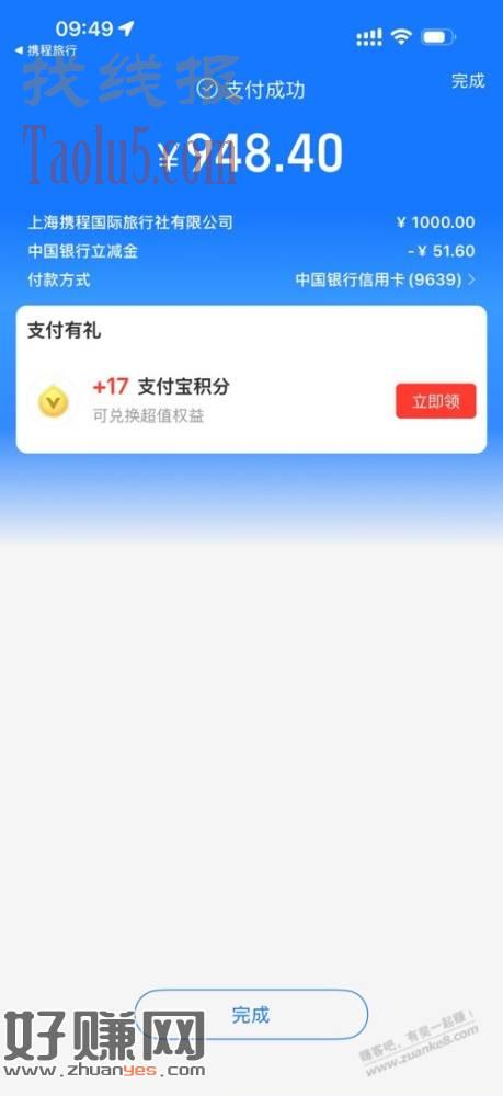买1000携程卡支付宝中信付款