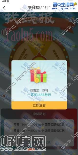 中行支付超给利抽奖 反馈1888元立减金