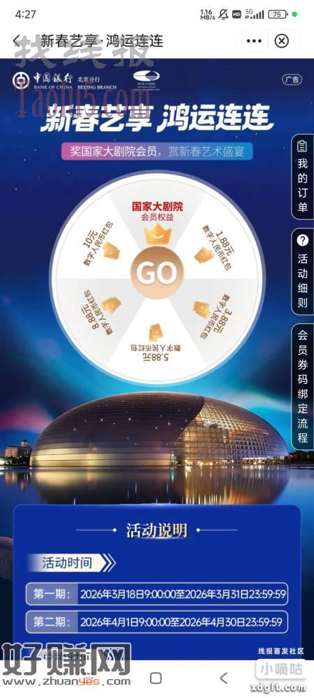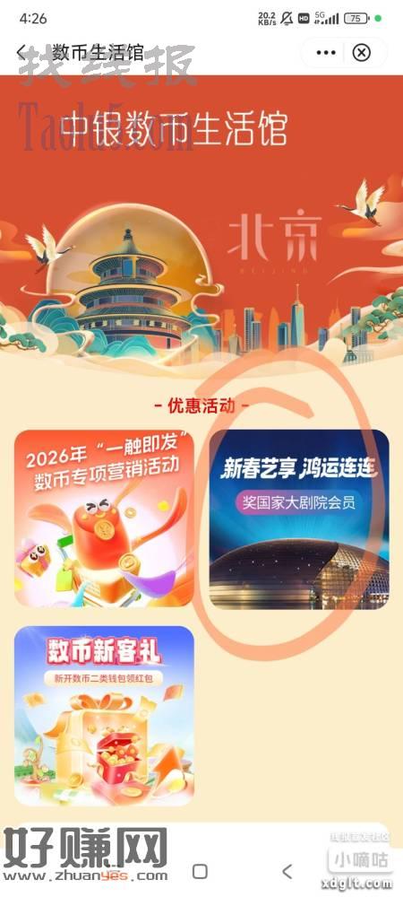北京中行生活 大剧院 抽数字人民币 最高10元