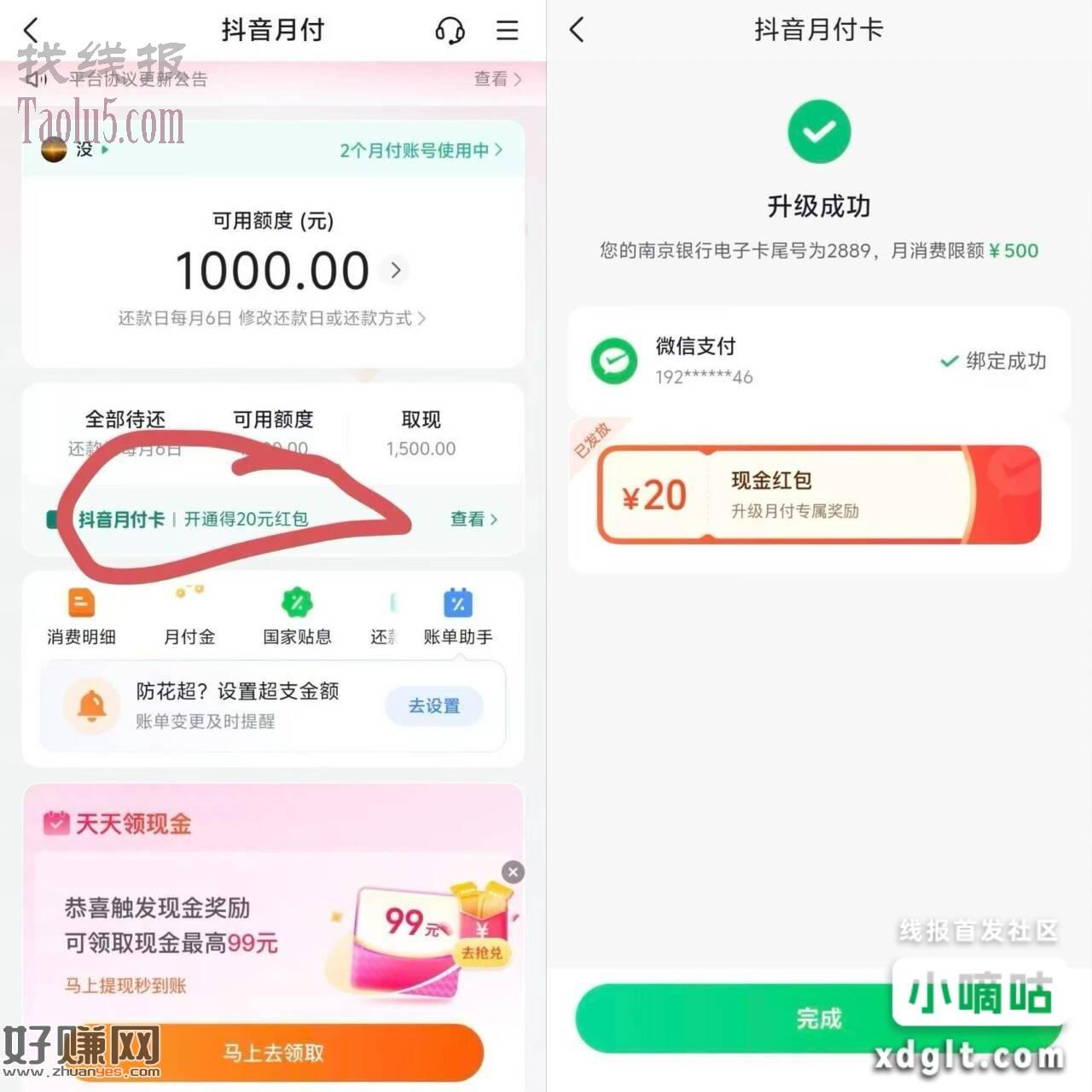 抖音 月付 下面有这个20入口的升级成南京印航 卡 一键绑