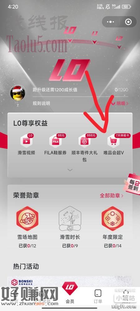 登陆点中间会员领取
