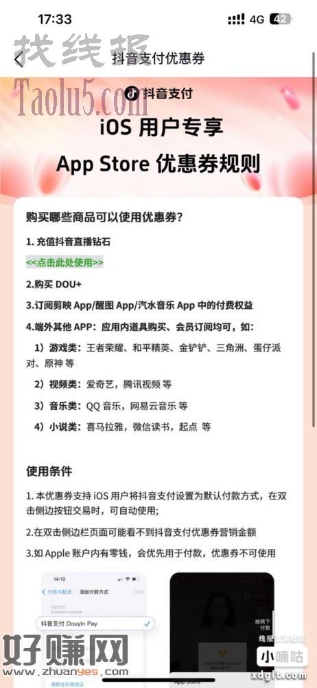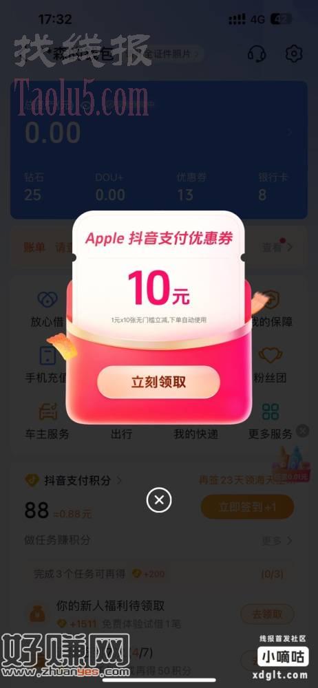 抖音钱包自动弹Apple10元无门槛优惠券,可以买虚拟物品,