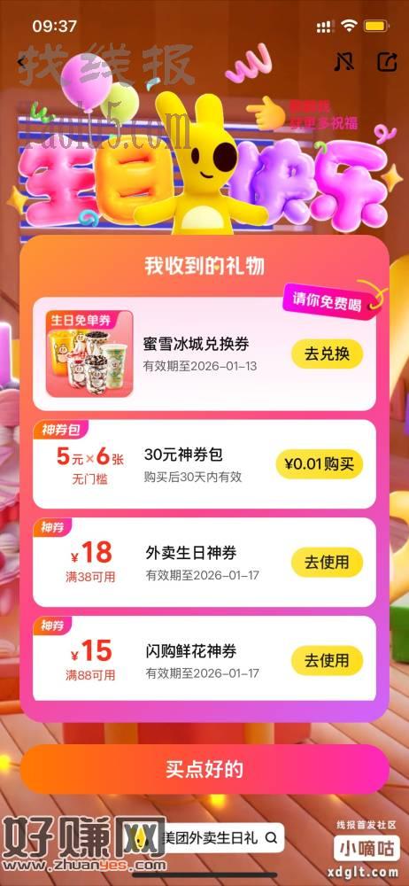 美团改生日,搜外卖生日礼,人人奶茶兑换券