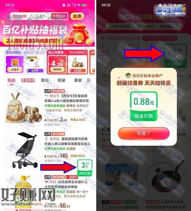 拼多多百亿补贴天天来抢券 亲测0.88元现金