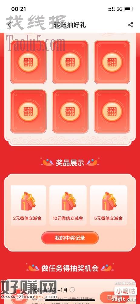 中hang转账抽好礼,立减金有水,快去。
