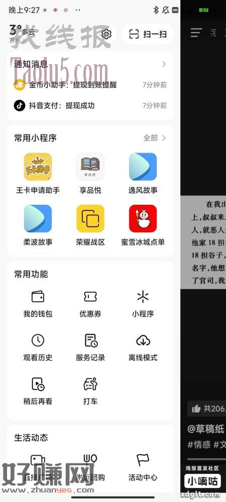 抖音极速版消息通知里面15字好评返现 带图双倍 一天5次 在