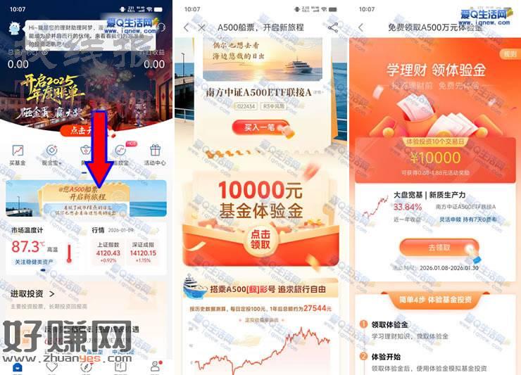 南方基金APP-首页中间滚动横幅【您A500船票 开启新旅程】-下拉领取10000体验金