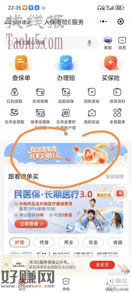 小程序 人保寿险E服务-红运连年高 刚中,自测