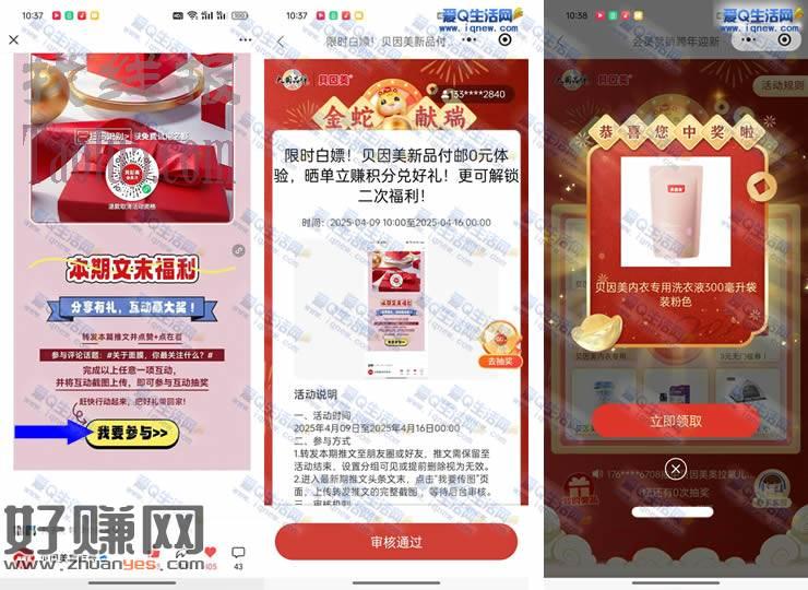 贝因美上传截图抽实物 亲测中贝因美洗衣液