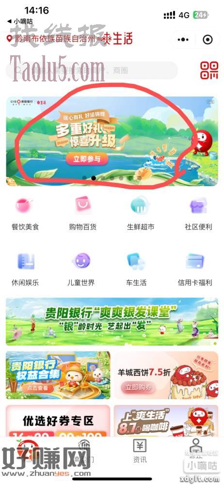 有贵阳银行的可以参加这三个活动,保守6.8毛#小程序://爽生活/kAMFocpMVDmYesq