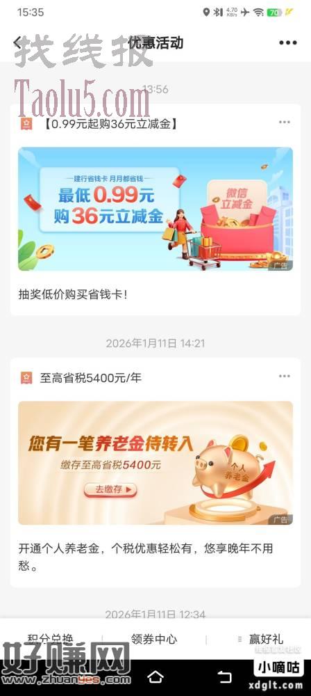建设银行打开点消息看优惠页面有没有推这个页有的话会推送9块立