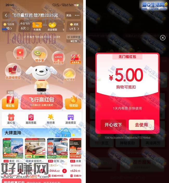 京东飞行赢红包 亲测2 5元京东红包秒到