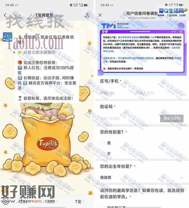 T宝调查员微信公众号-推文链接【点我立即注册提现】