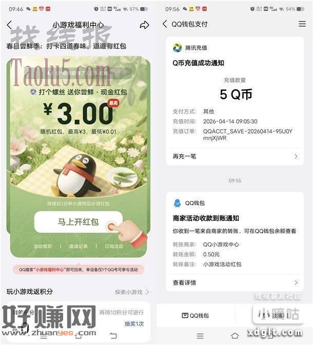 手机QQ扫描下面二维码进去参加小编提示:首次进去按照提示玩1分钟小游戏领一个随机金额现金红包,之后的红包是分享好友助力领,我自己玩了1分钟领到0.5元,可以领到多个红包