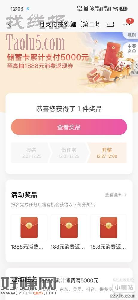 招商银行月月交易5000的开奖了,又是低保次次低保