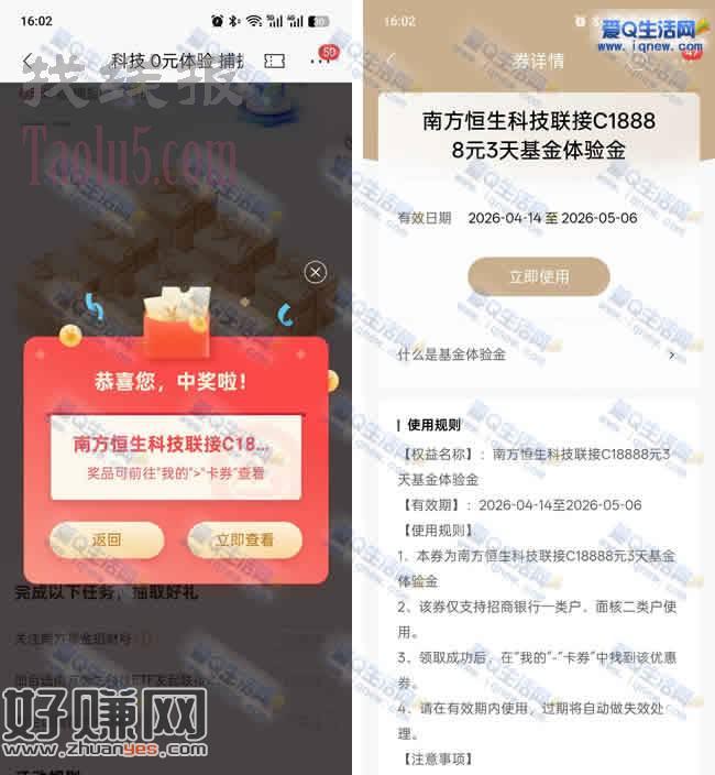 这个活动可以参与试试,我是中到了18888元三天体验金