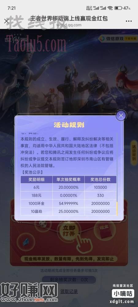 微信王者荣耀世界这玩意是抽奖,我两个号都没中。直接卸载!