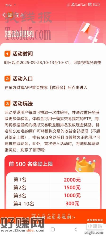 东方财富体验金又又又复活了,速度去看,周一开始,先去领体验金