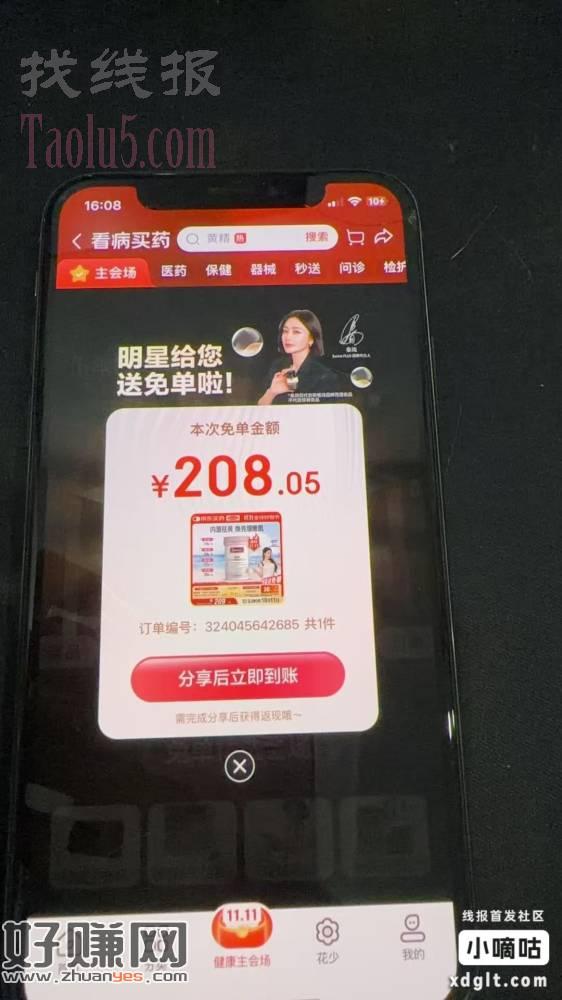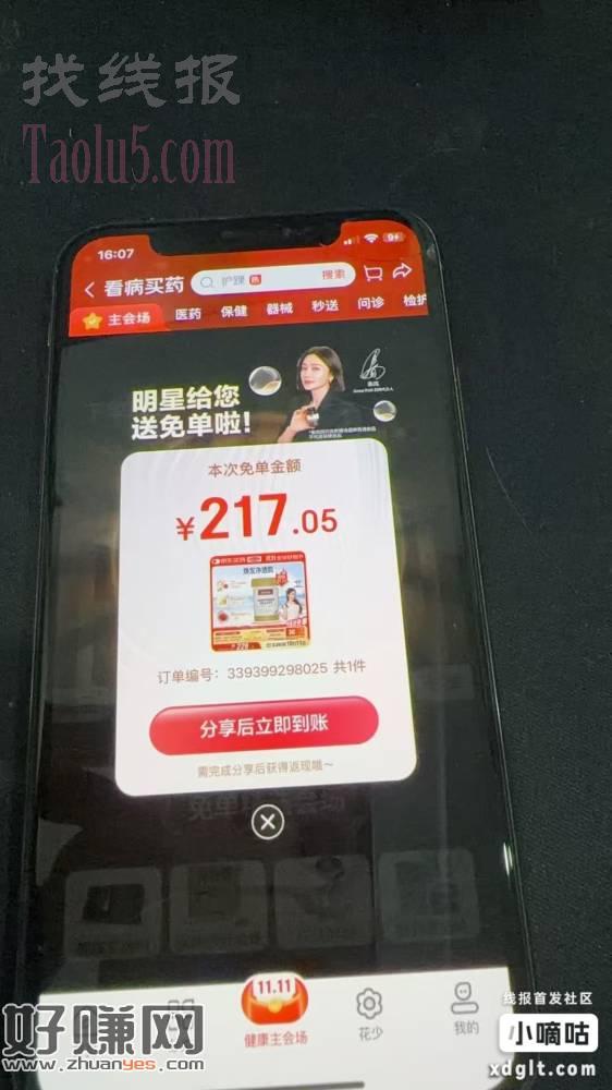 京东搜健康买单,买5单得5次抽奖机会,收到钱后退单就行