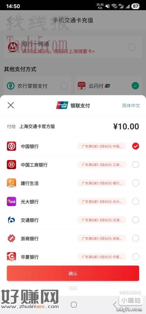 上海交通卡 云闪付充值10 -1.5 多卡多得