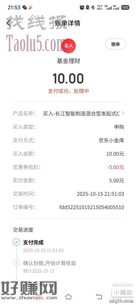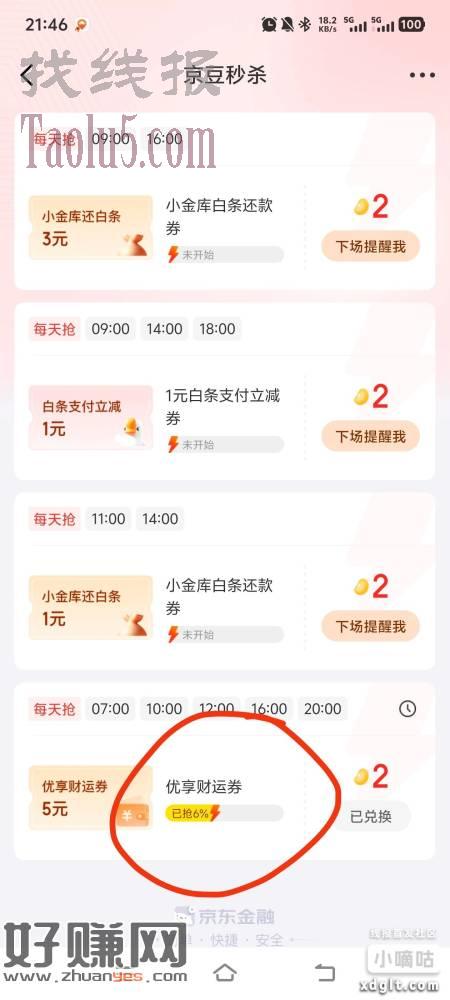 京东金融秒杀里面有这个5财运券,领了买理财10-5