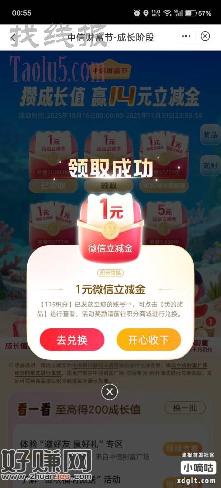 中信新活动,财富广场,最上面横幅,做任务浏览200,领两个1
