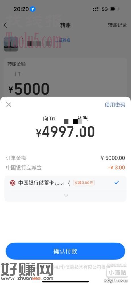 中国银行速度 支付宝 大小号互相刷了,500块了