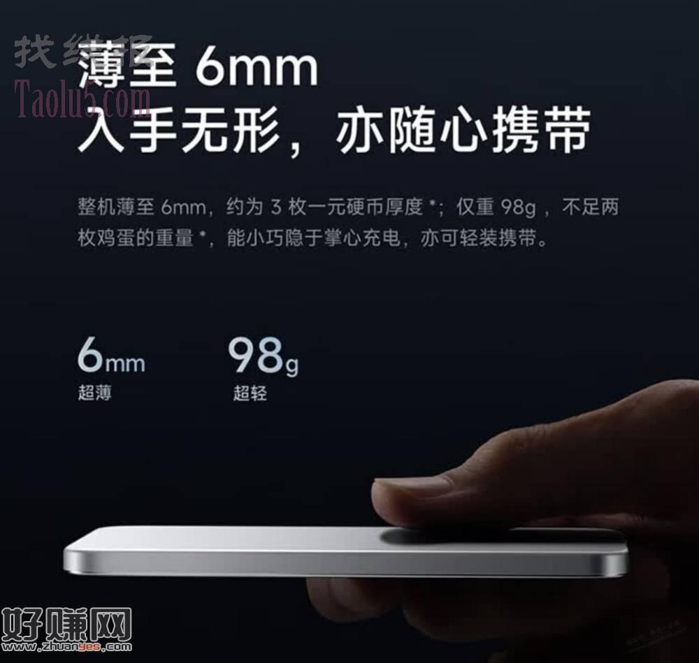 很薄,钛合金边框颜值高,要想续航久点估计要配个399元的小米充电宝才好用