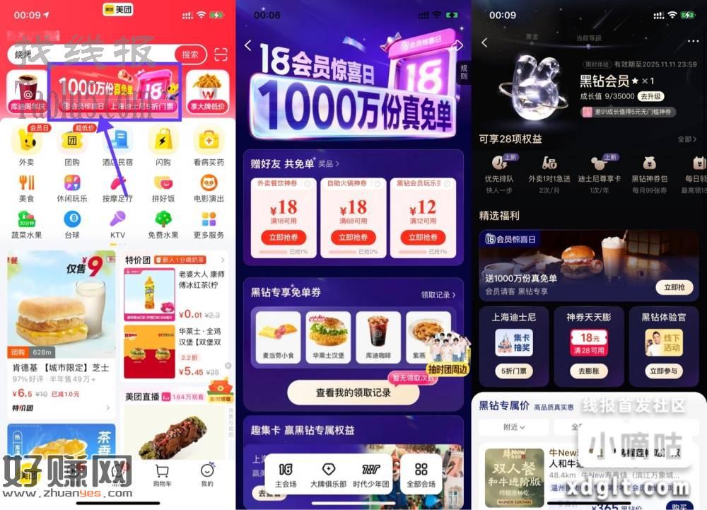 美団APP首页横幅进入,直接变成黑钻体验会员,有效期到11月11日结束
