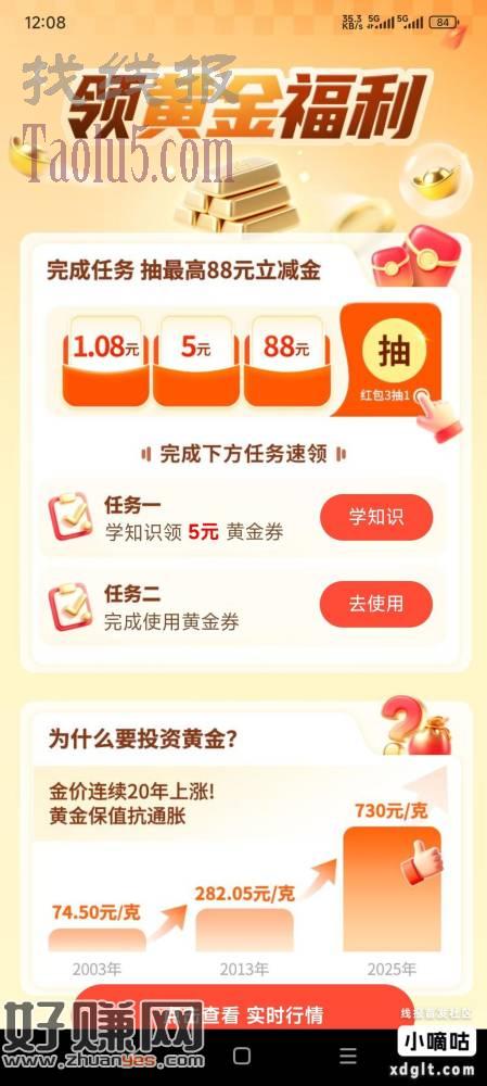 浦发银行5元黄金基金财富体验金 1.08立减金