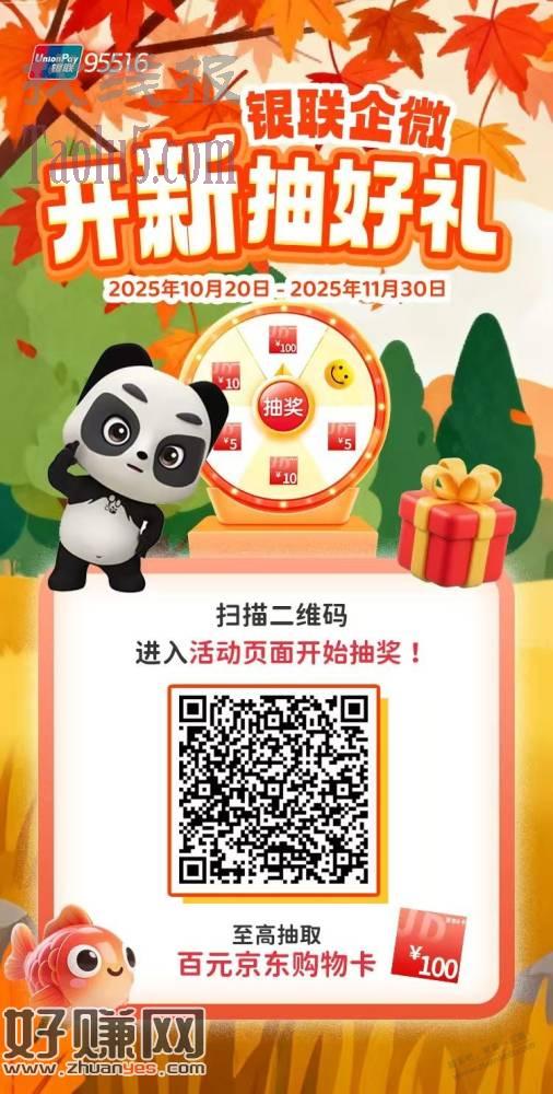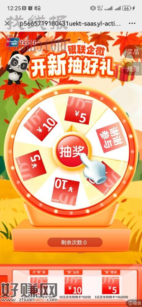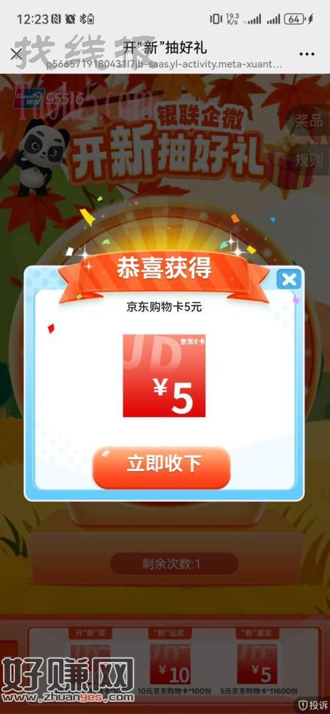速度!大毛!云闪付企微抽5~100元京东E卡