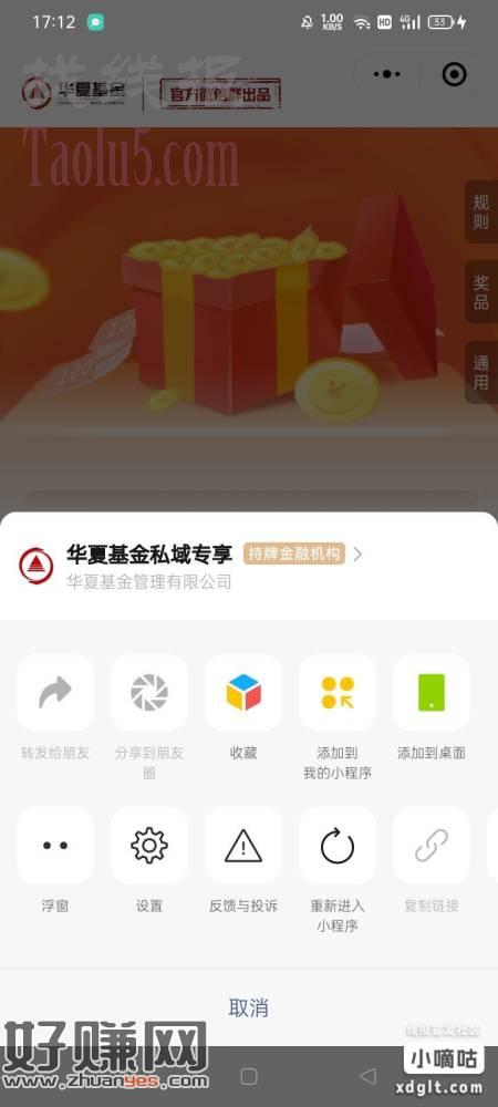 华夏基金调研随便填抽奖中了秒到,但是分享不出来,是华夏基金企微一个叫夏管家的推送发的