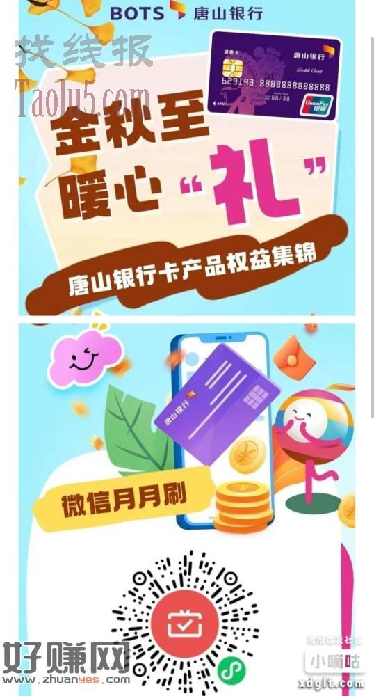 唐山银行月月刷11元 1000唐豆换10元 ,之前卡没解绑微信 可以参与