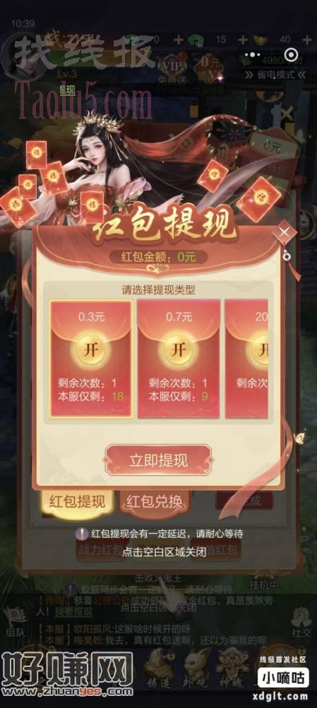 进新区,玩个几级看看这个区有没有提现名额。升到60级估计就能领到0.3?0.7,这是一个微信号的收益,我个人花了大概十分钟不到就拿下,红包到账会比较慢。我这个是12月22号到账的,大概要会等几个小时。红包发了要手动领哦。